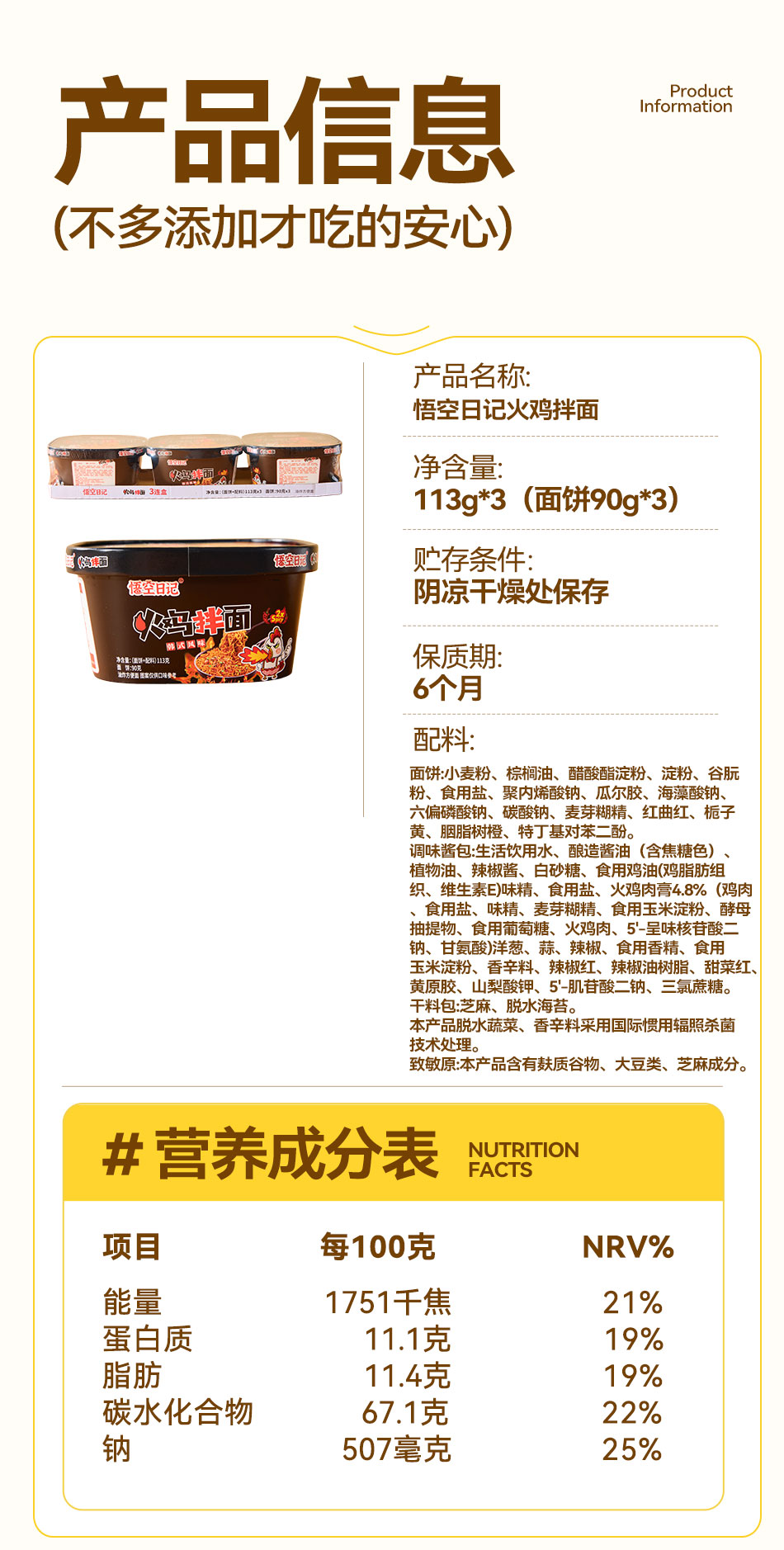 悟空日记-火鸡拌面 339g